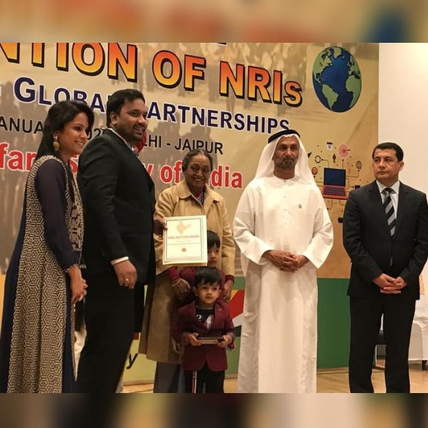 The most prestigious Hind Rattan Award was presented by the NRI Welfare Society of India at the 39th International Convention of Non-Resident Indians for Business Excellence, by Madam Meira Kumar, Former speaker of the Lok Sabha, on the eve of Republic Day, 25th January 2020, for keeping the Flag of India High.